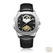 Automatische Piloten-Uhr aus schwarzem Leder und Edelstahlzifferblatt für zeitlose Eleganz